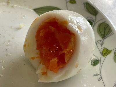 ゆで卵を手で何度も何度も押しつぶして確認し、「お望みの通り、ゆで時間7分です!」と、わたし好みの半熟ゆで卵を見事に完成させてくださいました!