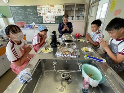 お世話になっている理科の先生、保健室の先生、支援員の先生をご招待して、いざ実食。夢中になってチャレンジしたからこそ、いつも以上に心を込めて「いただきます!」。いつもそうですが、画像だけでは伝わりませんね、この香ばしさ。当然「美味しい!」とこの笑顔になった次第でございます。