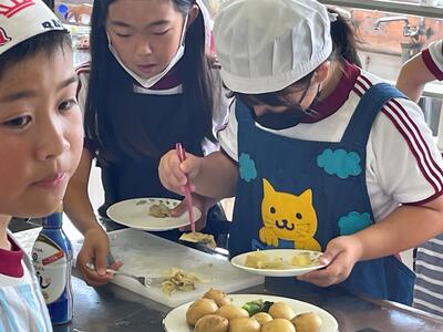 いつもははじけるくらい元気な5年生ですが、じつは慎重派が多いんですね。盛り付けの仕方はアレですが、塩コショウの味付けも慎重に慎重に。
