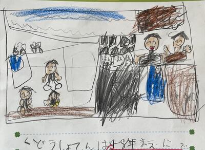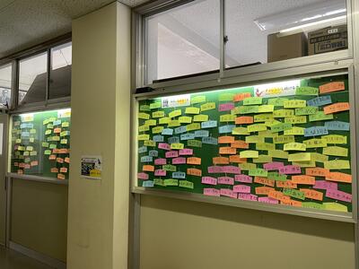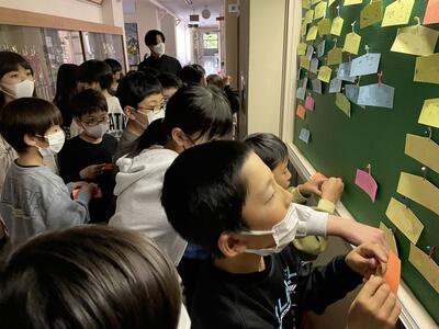 教室には学習のまとめが掲示してあります。直接見聞きしたことを自分なりに解釈し、絵や文章でしっかりと表現しています。豊かな表情の人が中心、状況を見取る観察眼がとても印象的です。教室で資料を見たり動画を視聴したりしただけでは得ることができない学びを得ていたことがうかがえました。やっぱり五感を働かせながら歩いて、ホンモノ、プロフェッショナルと出会い、ダイレクトにやりとりさせていただく活動は、子どもたちの思考をいっそう広く、深くしていくことを実感しました。今年も多くの事業所の皆様にご協力をいただき、2年生の学びを充実させることができました。ありがとうございました!
