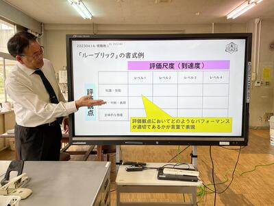 説明をしていくと、難しい言葉が多い、学習していない漢字があるとのご指摘をいただきました。初めは教員(大人)の言葉だったルーブリックは、子どもたちの意見を聞いて改訂を積み重ねていって、子どもたちが理解できる言葉や表記の仕方になっていきました。