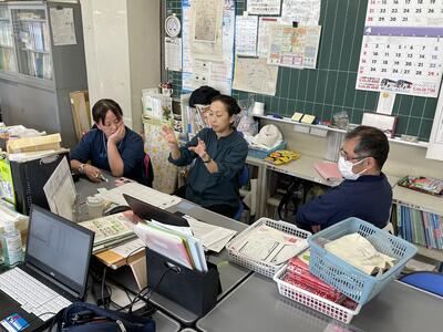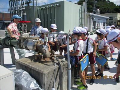 まずは常磐支所の温泉タンク。昨年も訪れてはいたのですがあまり意識していなかったようで...。「このタンクの中の温泉はどこから来ているのかな?」「なぜ鶴が描かれているのかな?」といったところが今回のフィールドワークのポイント!