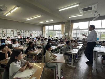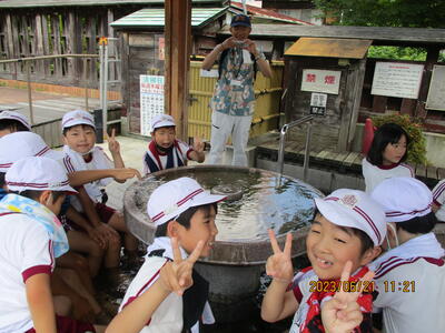 6月21日(水)、2年生に続いて3年生も生活科フィールドワークを実施しました。常磐支所(温泉タンク)を経由して湯本温泉株式会社さま、温泉神社さま、こいと旅館さま、そして鶴の足湯を訪問。2年生の時よりも遠く、広く、そして深く地元を学びます。今回も常磐公民館の大平先生にコーディネートをお願いし、当日もご同行いただきました。