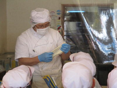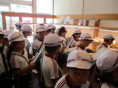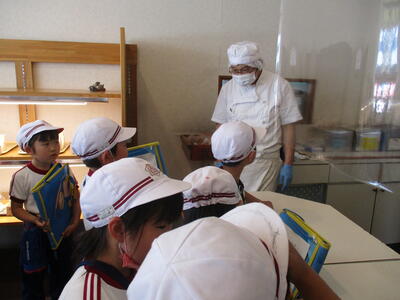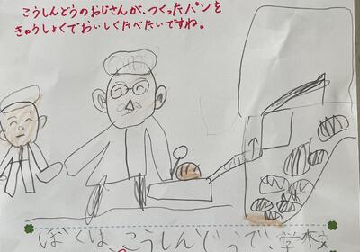 光進堂パン屋さんは、私たちの給食でお世話になっております。「そうなんだ!」ということで子どもたちの興味もいっそう高まったご様子。そこに、美味しいもの!までいただいたものですから、子どもたちの給食、明日から食べ残しなし!となることでしょう...。