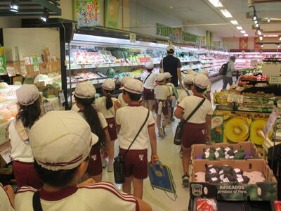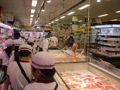 スーパーマーケットでは、いつもはお菓子コーナーに直行!でも、今日は広い店内をよーく見させていただき、改めてたくさんの商品が並んでいることに気付いた様子でした。