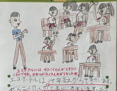 本校は観光客が多く訪れる町にあります。宿泊施設はお馴染みですが、実際どんなお仕事をしているのか?エコとは何?と貴重なお話しをいただきました。
