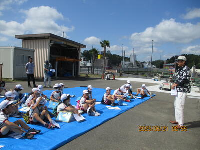 プロサッカーチームのいわきFCは子どもたちもよく知っていて、その説明に興味津々。お隣には巨大な物流倉庫があって、大きなトラックが何台も出入りしていました。子どもたちの目線は、いつも上向きでしたね。