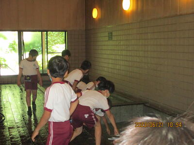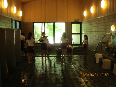 温泉はどこへ?ということで こいと旅館 に到着。お風呂まで見学させていただき、温泉のゴールを実感させてくださいました。最近、アニメやゲーム等のキャラクターに扮した方々が町を歩く姿を目にしますが、どうやら こいと旅館さんが関係しているようで...。後日談になりますが、フィールドワークから帰ってきた子どもたちに感想を聞いたら、「長倉小の土俵でキャラクターが相撲取ったらいいよね~」と話してくれて、「なんで?」と思っていたのですが、そういうことだったのですね。