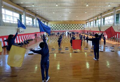これまでの5・6年生の鼓笛の練習の様子です。子どもたちの間に「長倉小PRIDE!」の文字を浮かべてご覧ください。