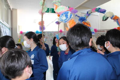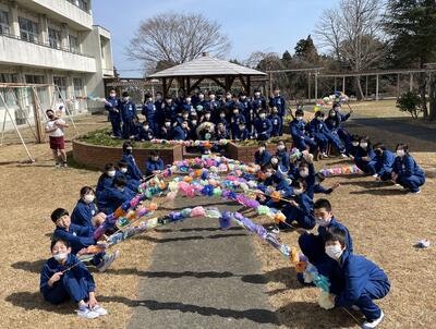送る会が終わった後、5年生は急ぎ校舎の中へ入っていきました。どうやら6年生が教室に入るのを先回りして、階段で花のアーチを架けるサプライズ!をしたのだそう。5年生の6年生に対する思いはどんだけ~!と、誰かが言ったとか言わなかったとか。子どもたちの純真な心の表れ、見守った先生方も温かい気持ちをいただきました。