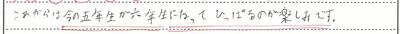 「長倉小の伝統」という言葉が出てきましたね。このことから6年生は、5年生に「心を一つにして団結してチャレンジしていくことが長倉小の伝統」で、それを受け継いで「守り続けていってほしい」と願っていたと、わたしは解釈しました。そして...