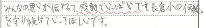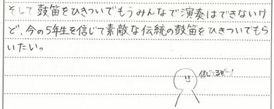 今回の5年生の演奏を見て、「5年生は長倉小の伝統を受け継いでくれた!今はもう5年生を信じてる!」とエールを送っているように感じました。その上で...