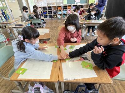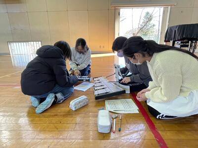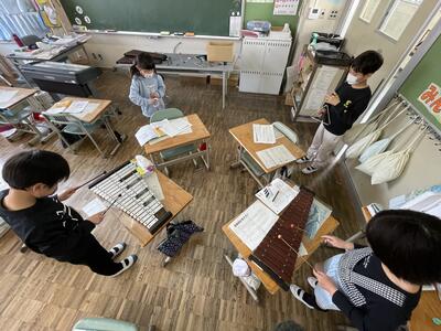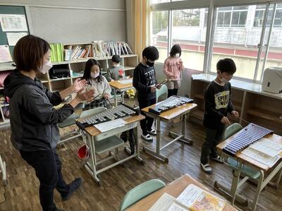 2年生は、みんなで楽器を持って「音楽時計を つくろう」にチャレンジしていました。初めて手にする楽器もあって失敗を積み重ねながら心を一つにして音を楽しむ姿、まさに音楽です。