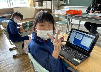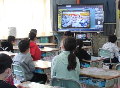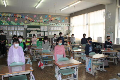 この様子はいつものように給食の時間に各学級へ動画配信しました。そう言えば、学校というところは毎日必ず子どもたちの歌声や楽器の音が響いています。こちらは1年生。最近は "たのしいひなまつり" の歌声が響いていましたが、今日は終業式に向けて "君が代" や "校歌" を頑張っていました。歌う姿勢が素晴らしいですね。