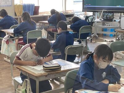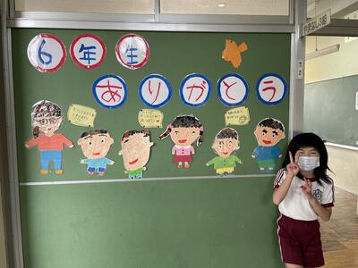 そして、5・6年生の教室の間には、お互いの思いを書いたメッセージが掲示してありました。常に子どもたちの学びを支える先生方のご配慮にも感謝でございます。