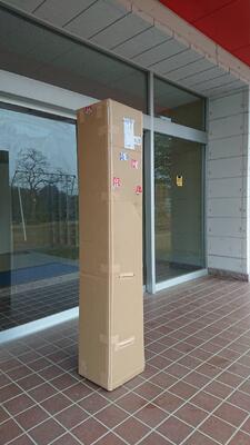 さて、本日この縦長の段ボール箱が届きました。中には?