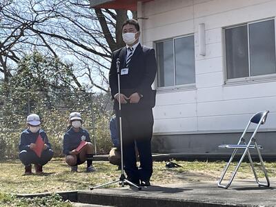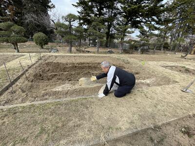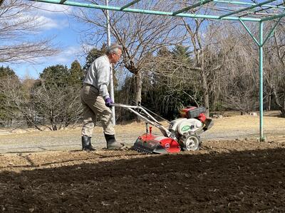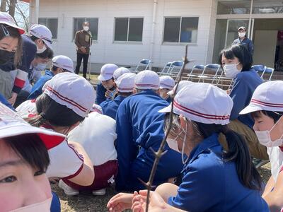 なんと常磐公民館の今野先生ではありませんか!「いやー、あったかくなってきたから、畑の準備をしてみっかなと思って。勝手にお邪魔してごめんなさいね!」とのこと。「いやいや、ひと声かけてくだされば、お迎えに上がりましたのに...。こちらこそ申し訳ございません!」となったしだい。「6年生も卒業だね。あの子どもらの笑顔を見ると、また次がんばろう!ってなってさ。用務員さんも土起こしを一生懸命やってくれて、子どもたち幸せだよね」と会話も弾みました。