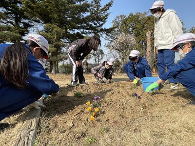 先週15日(水)には運動・環境委員会の子どもたちが外に出て春の花々を植えました。久しぶりの土いじり、子どもたちも春の訪れを感じてかどこか嬉しそう。一方で「これが最後の花植になると思うとさびしいような...」とは6年生。様々な気持ちが交錯する、まさしく春ですね。