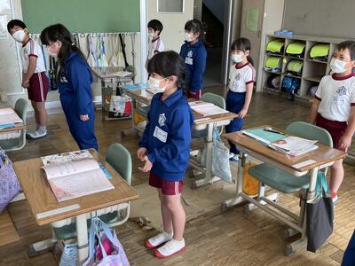 模範を見終わった1年生児童、突然「もう一回やりたいです!」とのお申し出。するとご覧の通り!