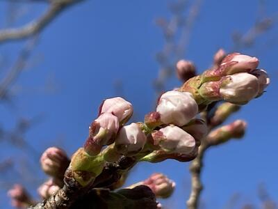 ソメイヨシノのつぼみはご覧の通り!明日はいよいよ長倉の杜の開花宣言!となるのでしょうか。