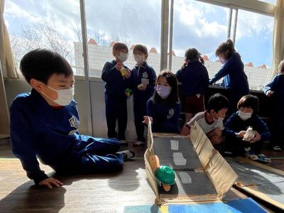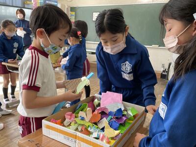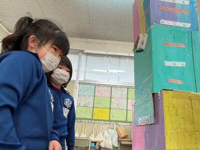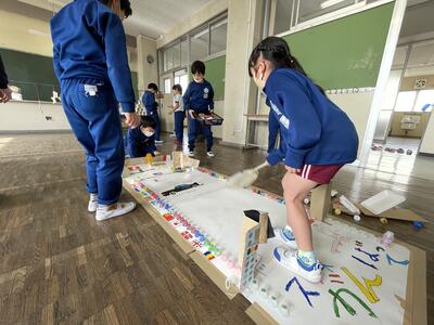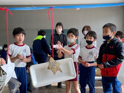 2年生は生活科「うごく うごく わたしの おもちゃ」の授業で、協働で手作りおもちゃを製作しました。そして本日2月9日(木)、生活科「つたわる 広がる わたしの生活」の授業で1年生を招待し、動くおもちゃを使ったお楽しみ会を企画し、開催しました。おもちゃ製作は2学期に行い、1年生と遊ぶこの日を今か今かと待ち望んでいた2年生、オリジナルのおもちゃを自慢したい!1年生を楽しませたい!という思いが授業開始前から教室中に溢れていました!