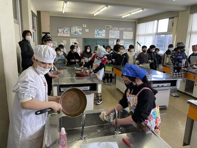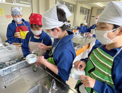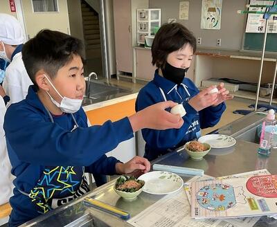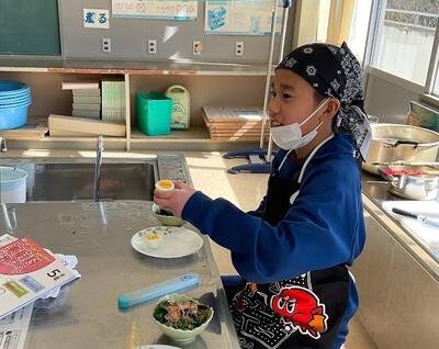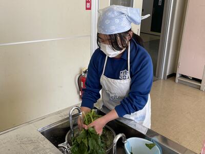 さて2月14日(火)、5年2組の子どもたちから「調理実習をやるんです。来てくださいね!」のお声かけをいただきお邪魔させていただきました。メニューは“ゆで卵”と“ほうれん草のおひたし”。わたしが到着した時にはすでに調理を終えて、配膳からにこやかに実食へ!
