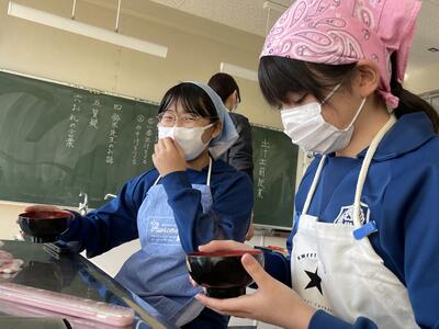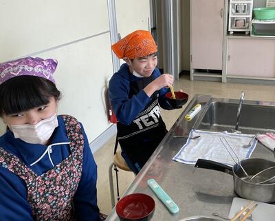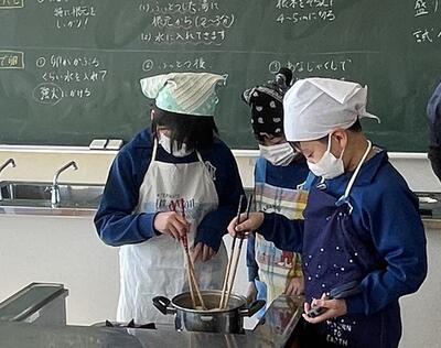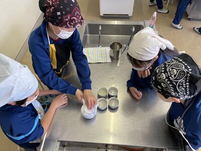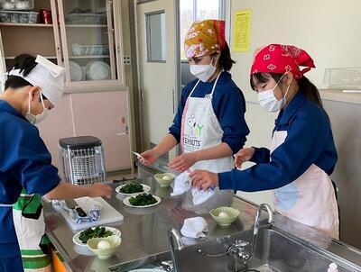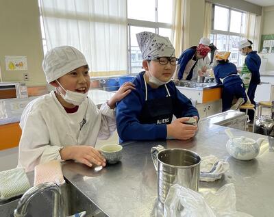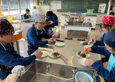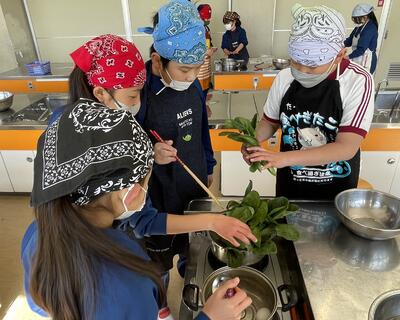 「半熟卵じゃなかったけどいいよね!」「おひたしもよくできたね!」「ほうれん草は少し早く冷やした方がよかったかな?」の声。自分たちで協力して調理をした分、会話も弾んでいましたね。