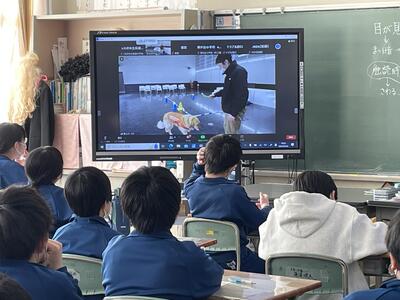 さて、2月2日(木)のことになりますが、6年生は人権教育の一環として、日本盲導犬協会富士ハーネスとオンラインでつなぎ、盲導犬教室を実施しました。曲がり角の通り方や階段の上り下りなど、盲導犬の訓練の実際の様子を説明していただくとともに視覚障がいへの理解を深めました。
