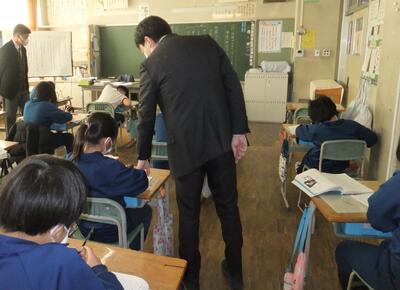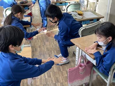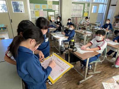 2月14日(火)、今朝は毎週火曜日に実施している「すこやかタイム」の様子を見学に、2・3・4年生の教室を訪問してみました。この「すこやかタイム」は、健康な生活を送ることができるようにお互いに衛生面に気をつけていくことを願いとして、ハンカチ・ティッシュなどの持ち物や髪の毛やつめなどの身だしなみを確認しています。