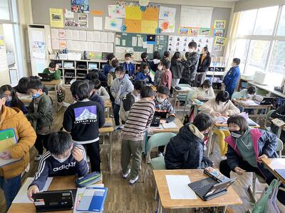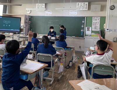 授業の最後に先生から、「皆さんは『想像力のスイッチ』をONにしていますか?」という問い掛け。子どもたちはハッとした様子。「下村さんの説明文から学んだことを早速これからの生活で活用していきましょう!」ということで、この後の学習では、情報とうまく付き合っていくためにはどうしていったらよいのか、自分の考えを文章にまとめていくとのことです。