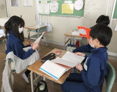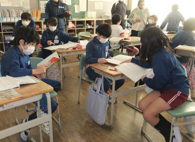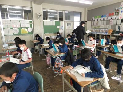 授業は、今年度本校で大事にしている教科書をしっかり読むことからスタート。3分という制限時間、何度も読んできた文章とは言え、子どもたちは自分のペースで内容を読み味わっていきました。