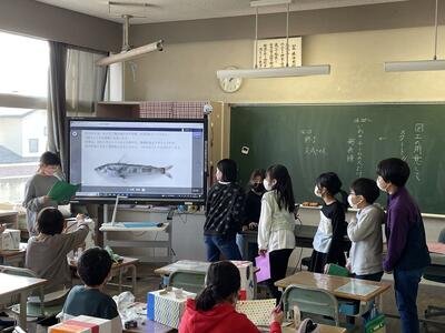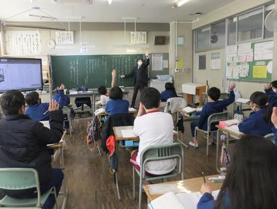 2月9日(木)、5年1組の国語科において校内授業研究会を行いました。授業で取り上げたのは、下村健一さんが著した「想像力のスイッチを入れよう」。情報を事実か意見か見分けて吟味し、広い視野からとらえることの大切さを説明した文章です。