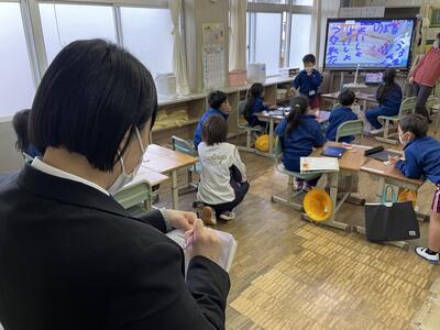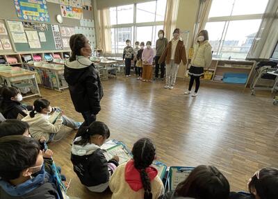 そうこうしているうちに1年2組の皆さんがやってきてしまい「あっ、もう来ちゃった!」と慌てる2年生の姿がとっても印象的でした!何より担任の先生が...。果たしてこの後、順調におもてなしができたのでしょうか?