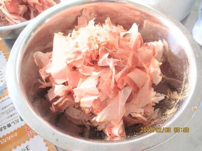 この後、「出汁で使った鰹節も食べられるのですか?」の質問に鈴木先生「もちろん!」。「じゃぁ昆布もですか!」「もちろん!」。ということで特製おかか・昆布入りのレシピをご教示いただき、こちらも実習させていただきました。砂糖と醤油を入れて、焦がさないようにかき混ぜてと...。多少労力を使いましたが、ごまを振りかけて出来上がったおかかを味見したら、当然「ご飯が欲しい!」となりました。