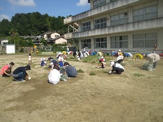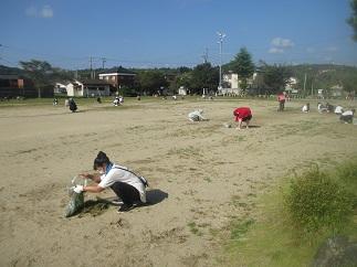 今日は、土曜授業で「親子奉仕活動」がありました。早朝よりたくさんの保護者の方々が来校され、ご協力いただきました。また、子どもたちも1校時の中の20分程度(熱中症対策のため時間を短縮して)活動に加わり、除草作業を行いました。本日も気温が高かったため、途中で休憩を入れるなど、熱中症対策を講じながらの作業となりました。本校の保護者の皆様、ありがとうございました。