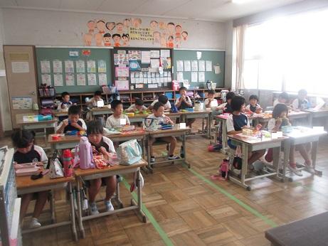 2020年9月15日 13時47分今日は、1、2年生の学習の様子を紹介します。1年生は、生活科で「夏の植物」を探していました。普段は気にも留めない草花でも、改めて探してみると「きれい」「かわいい」といって嬉しそうにしていました。2年生は、算数科で「3位数-2位数」ひき算の筆算に取り組んでいました。繰り下がりが2つある筆算で、「できる」との声がある一方、少し時間がかかる子もいたようです。給食は、3、4年生の様子です。