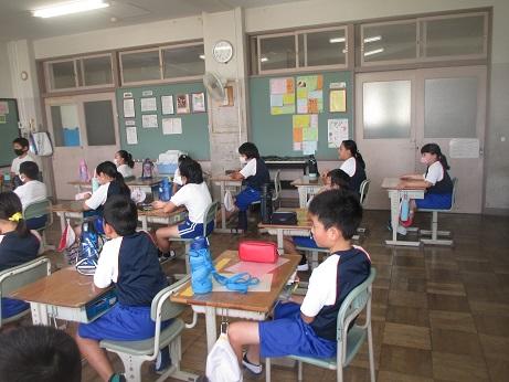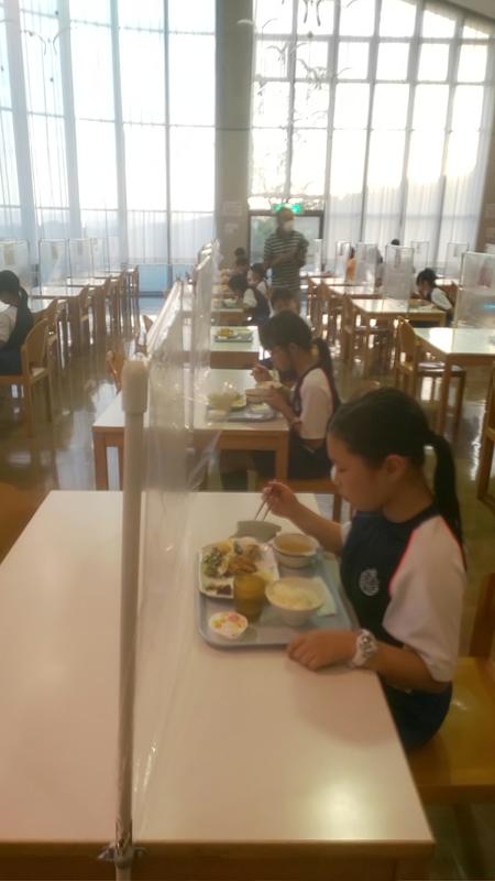 今日は、3、4年生の授業の様子を紹介します。3年生は、音楽科で「合唱やリコーダー」の練習に取り組んでいました。担任の先生からの話をよく聞いて、意欲的に取り組んでいました。4年1組は、学級指導で「登下校の正しい歩き方や不審者対応の仕方」について、みんなで確認していました。4年2組は、音楽科で「鍵盤ハモニカや合唱Today」を披露していました。ソーシャルディスタンスを意識し、マスクを付けながらの授業となりました。給食は、5、6年生の様子です。