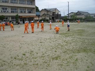 学校再開に向けて、校庭の除草やトラックの整地を行いました。学校は必ず再開します。子どもたちが学校に戻る日のために、教育環境を整えたいと思います。