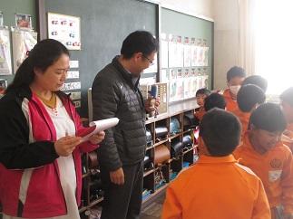 今日は、学校薬剤師の庄子授先生が来校し、教室の照度(明るさ)と二酸化炭素濃度を測定しました。外が晴れていましたので、照度は基準をクリアしていましたが、二酸化炭素濃度は、ブルーヒーターを使っていることもあり、少し高めでした。先生からは、少し寒くとも休み時間ごとに換気することが大切であることや、風の通り道を作るように窓を開けること等をご指導いただきました。