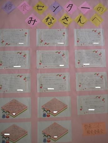 給食委員会の児童が、全校児童を代表して、1年間毎日おいしい給食を作っていただいた勿来学校給食調理場の皆さんにメッセージを書きました。全体の写真では、個々の文面まで読み取ることは難しいですが、子どもたちの素直な感謝の気持ちが伝わってきます。メッセージは後日届けます。