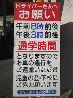(3)体育館前の道路は道幅が狭く、児童の通学路でもあるため、登下校時間帯は車の通行をご遠慮いただくようお願いしています。なお、この道路に直線でつながる先の道路には、車の通行に時間規制がかかっています。特に保護者の皆様には、ご理解とご協力をお願いいたします。