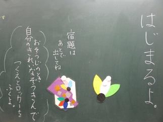 今日は、担任が子どもたちを迎える準備をしました。明日の朝、新たな気持ちで登校してくる児童を迎えるための担任からのメッセージを、一足早いですが、ご紹介いたします。