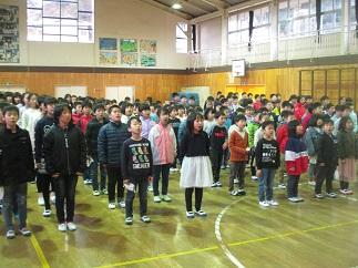 本日8:30より、体育館で第3学期の「始業式」を行いました。具合が悪く欠席した児童が2名いましたが、児童・職員とも事故なく冬休みを過ごし、無事に始業式を行うことができました。