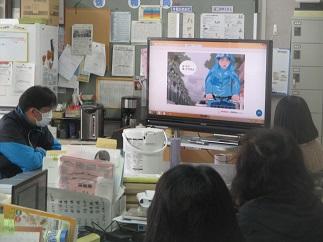 今回は、時間的な余裕もあったため、インターネットから、ある自動車メーカーの「危険予測トレーニング」を職員全員でやってみました。実際に車を運転する運転者の視線から撮影されたアニメーション動画を見ながら、そこにどんな危険が潜んでいるのかを見つけ合います。アニメとはいえ、雪でスリップして車がセンターラインをはみ出したところなどは、ヒヤッとしました。