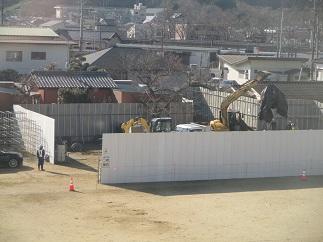 先週、一斉メールでお知らせしましたとおり、校庭に埋まっている除染土壌の掘り起こしと運搬の工事が始まりました。1月12日(土)と13日(月)に資材の搬入と仮囲い等の設置を行い、本日より本格的に工事が始まっています。学校では、工事業者とその都度打ち合わせを行いながら、児童の健康と安全を第一に工事を進めていくようにいたします。工事の様子は、随時このページでお知らせして参ります。