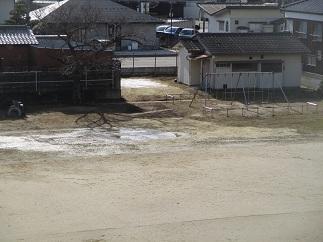 校庭で行っておりました除染土壌等の搬出工事が無事に終了しました。校庭の仮囲いや重機等の撤去も終わりましたので、今日の午後から通常通り校庭を使うことができるようになりました。現場の原状復帰が一部まだのところがありますが、今後の天候や校庭の状況を見て整地等を行います。