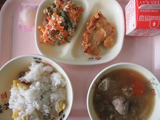 11月24日(日)は、「11(いい)24(にほんしょく)」で「和食の日」です。これは、「日本人の伝統的な食文化について見直し、和食文化の保護・継承の大切さについて考える日」として制定されました。これにもとづいて、今日の給食は「だしで味わう和食献立」となりました。内容は、牛乳・さつまいもご飯・ゆず香る鶏田楽・白和え・さんまつみれ汁・ひと口梨ゼリーです。地元の郷土料理や旬の食材を取り入れた秋らしい献立です。担任からは、「だし」のことや和食のすばらしさ、ユネスコ無形文化遺産に登録されたことなどを、学年に応じて指導しました。