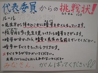 今日は、予定通り「勿来二フェスティバル」を行いました。土曜日ということもあり、多くの保護者の方々だけでなく、児童の兄弟もいっしょに楽しんでいる姿が見られました。内容は「4・5・6年生が準備したゲームを縦割り班ごとに回って遊ぶ」というものですが、来てくれる人のことを考えながら友達と力を合わせて準備するということは、実は難しいことです。これからの子どもたちに付けるべき力として、大切にしていきたいと考えています。
