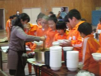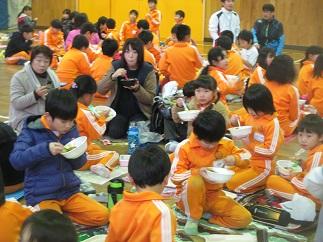 後半は、体育館で「PTA親子食のイベント」を行いました。朝から20名をこえる保護者の方に、カレーの準備をしていただきました。