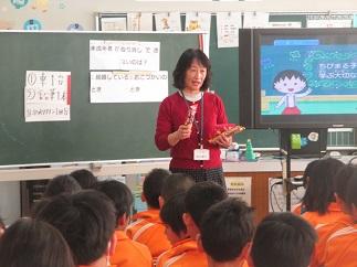 今日は、市消費生活センターの消費生活コーディネーター市川さんにおいでいただき、消費者教育の出前講座を行いました。「私たちはだれでも『消費者』であること」「よく考えて買い物をし、お金を大切にすること」「地球全体のことを考えた買い物をすること、またそのことを表すマークのこと」「いわゆる消費者トラブルに巻き込まれないようにすること」などを、わかりやすく教えていただきました。